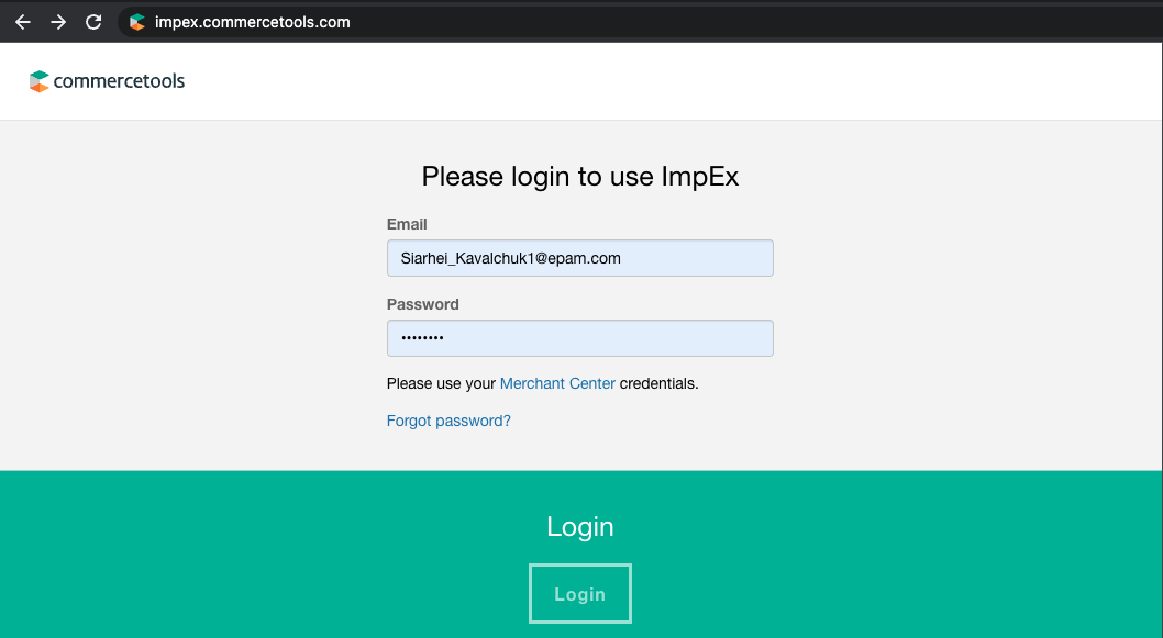 Go to https://impex.commercetools.com/ to log into Impex.